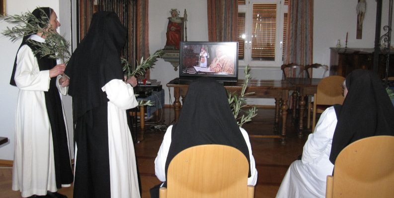 mit frischen Palmzweigen. Durch die Coronakrise werden wir im Kloster die Karwoche ohne öffentliche Gottesdienste feiern.