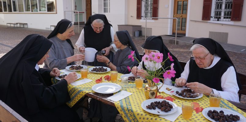 Eine sonntägliche, gemütliche Runde im warmen Sonnenschein bei Apfelsaft und Kastanien.