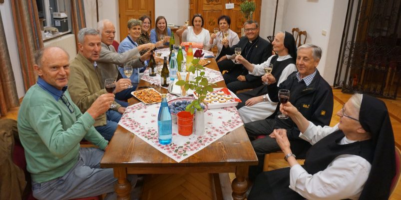 trifft sich im Sprechzimmer von Mariengarten und freut sich mit Mutter Äbtissin Bendedikta über ihre Erwählung.