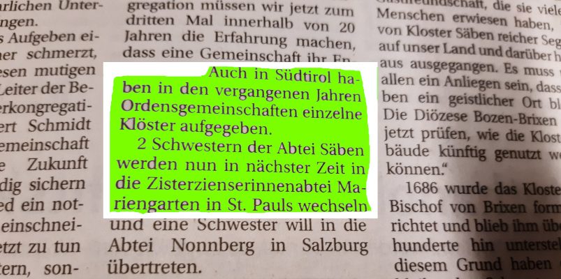 von Mariengarten und die Schwestern von Säben wünschen allen ein gesegnetes Osterfest, den Frieden und die