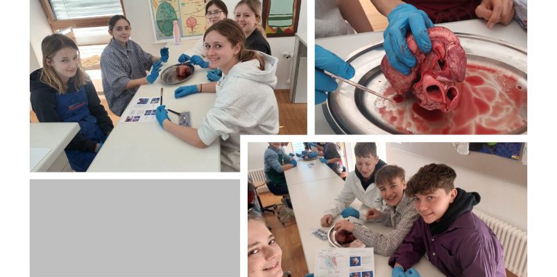 Die 3A untersucht am Schweineherz die verschiedenen Bestandteile wie Herzkammern, Herzklappen, Blutgefäße, …