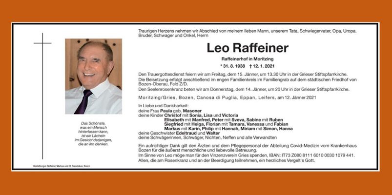 Unsere Familiare und Freund des Hauses hat sich aufgemacht zur Begegnung mit seinem Schöpfer. R.I.P