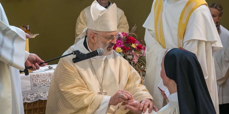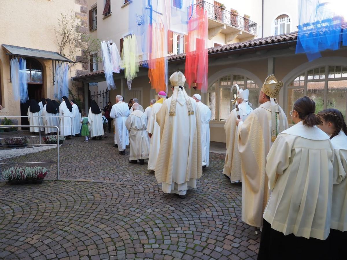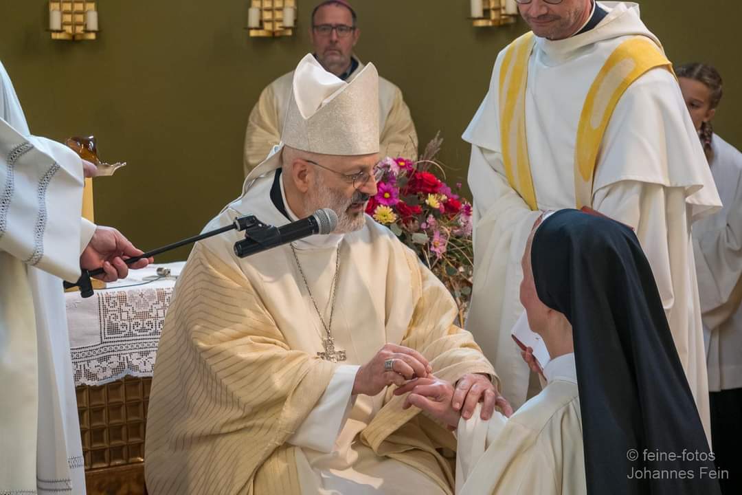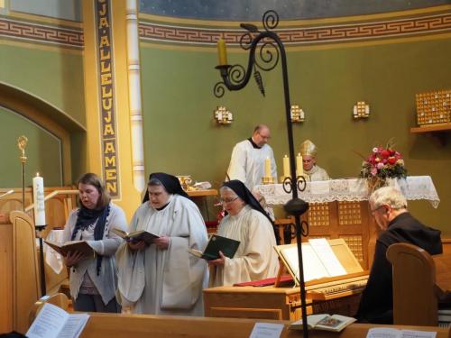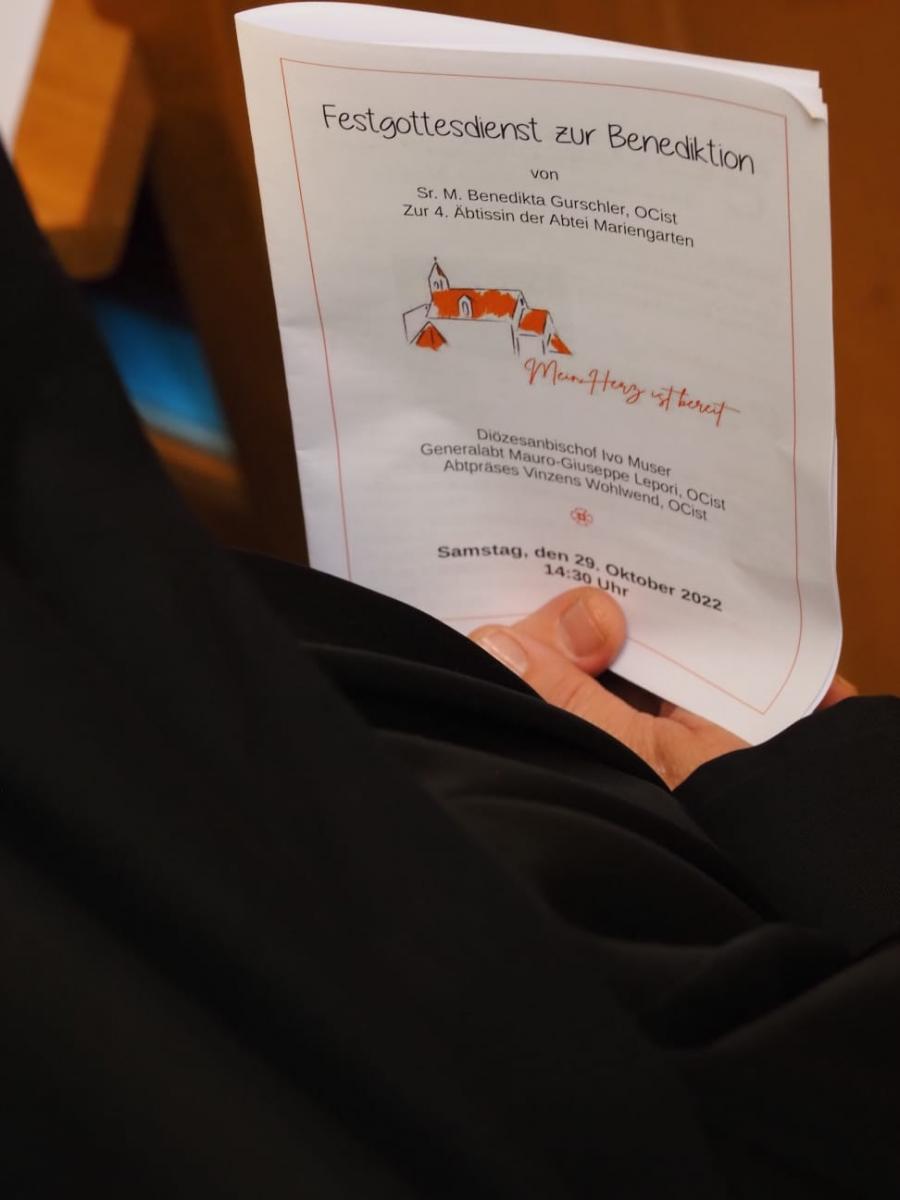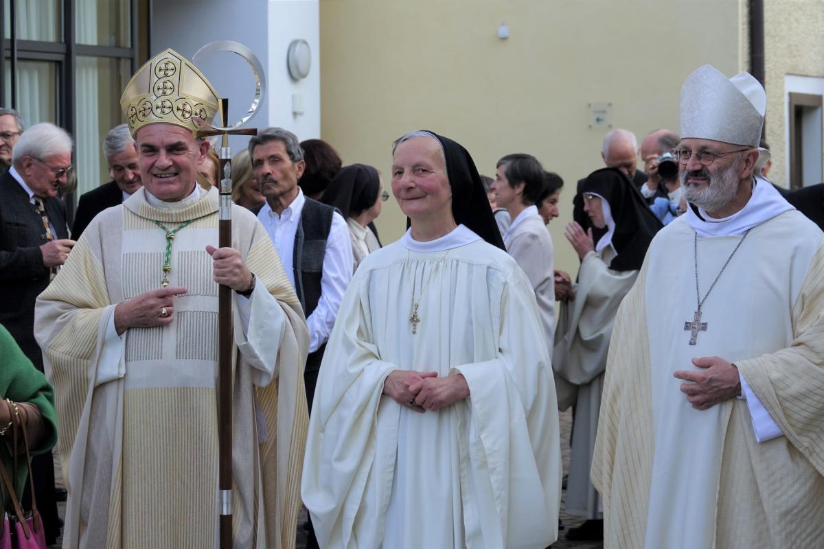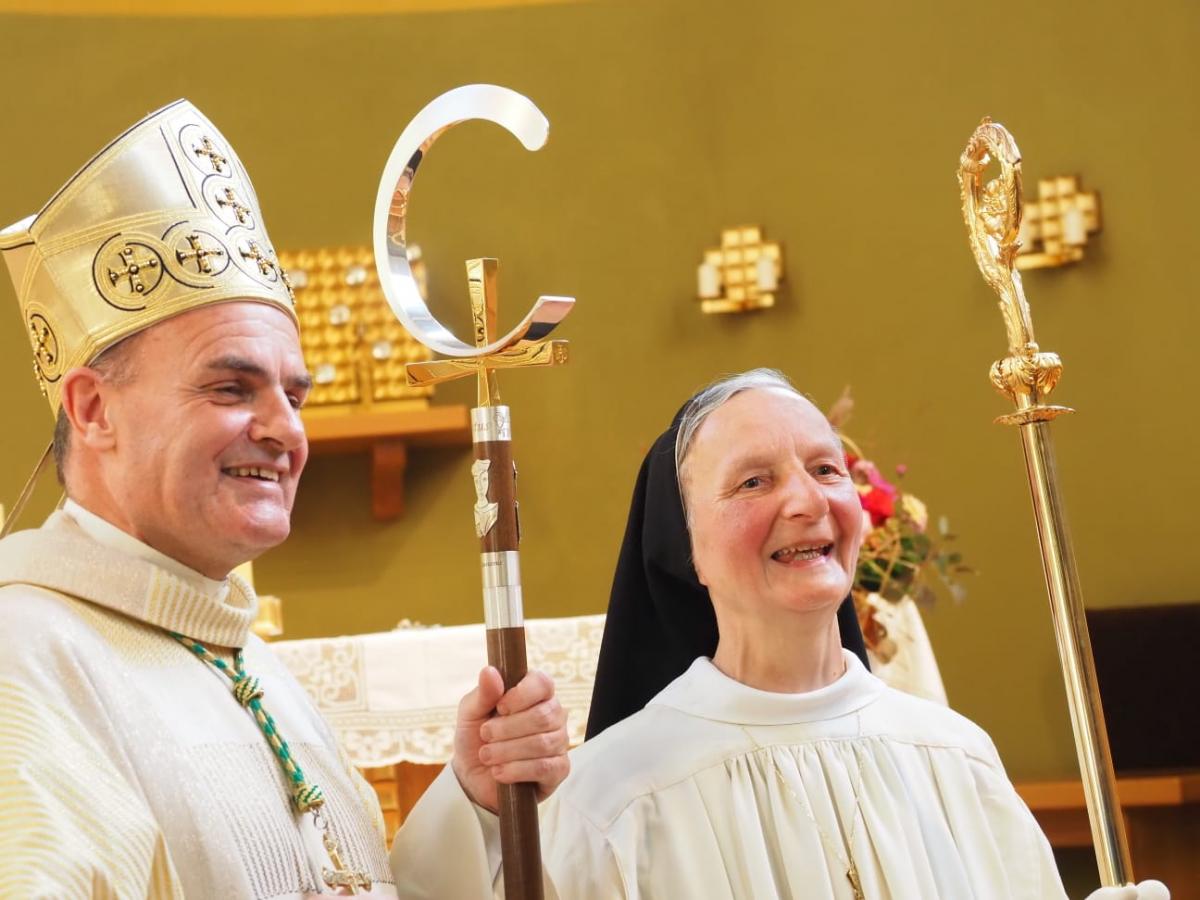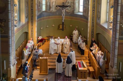 Im Pontifikalamt, das Bischof Ivo Muser leitet, wird Mutter Benedikta von Generalabt Mauro Lepori zur 4. Abtissin von Mariengarten geweiht.