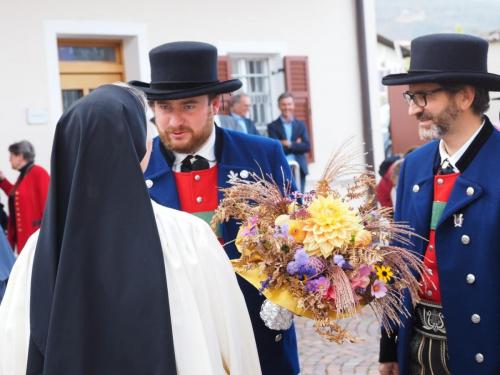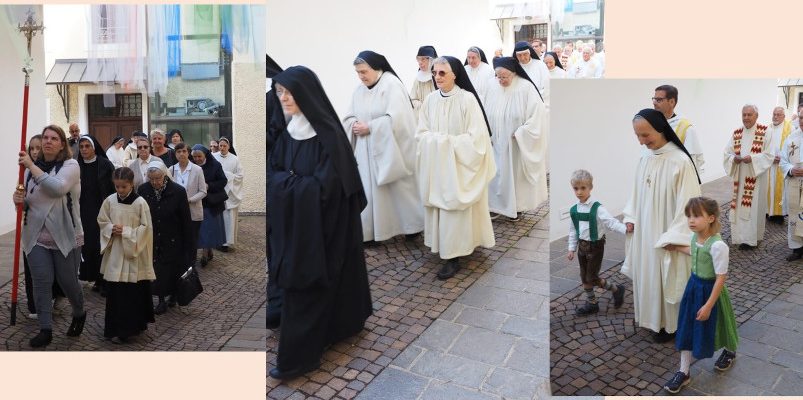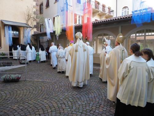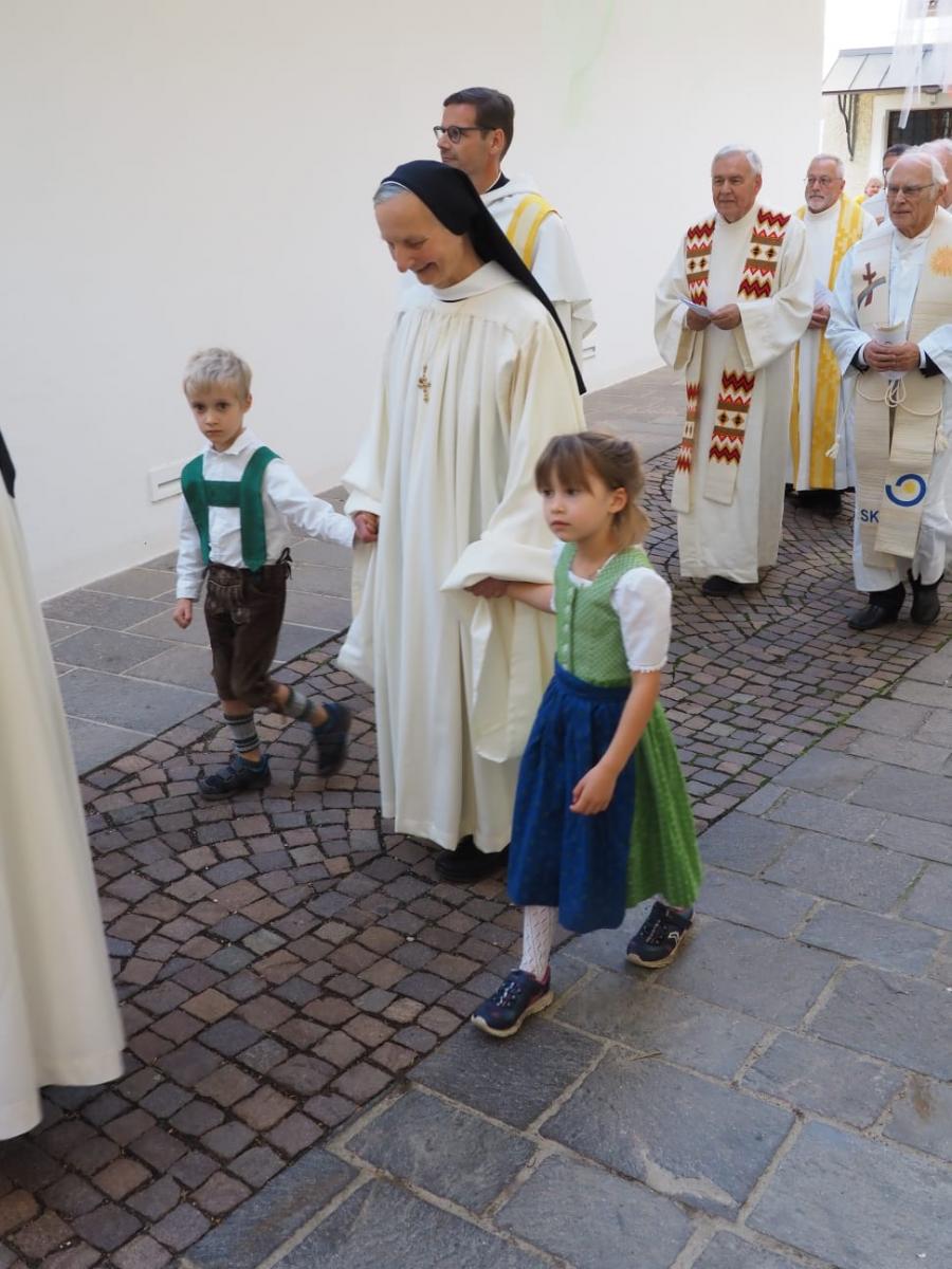 Die Festgemeinschaft begleitet unter Glockengeläute Mutter Benedikta in die Klosterkirche.