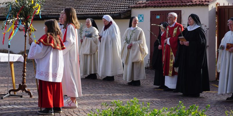 Auf dem Parkplatz in Mariengarten findet auch heuer wieder die Palmweihe statt. Von da ziehen die Gläubigen in die Pfarrkriche.
